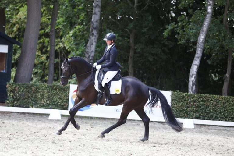 Daarna heb ik met 2 pony’s wedstrijden gereden. Met de ene pony werd ik M1 dressuur en met de andere pony Z2 dressuur. Met deze pony mocht ik zelfs mijn laatste jaar bij de pony’s naar de Nederlandse kampioenschappen in de Z2 waar we mooi 5e werden.Daarna ben ik over gegaan op de paarden. Mijn eerste eigen paard was Romygic die ik zelf zadelmak heb gemaakt en tot de Z2 dressuur heb gereden en het M springen. Dit paard was toen 9 jaar en die hebben we verkocht.